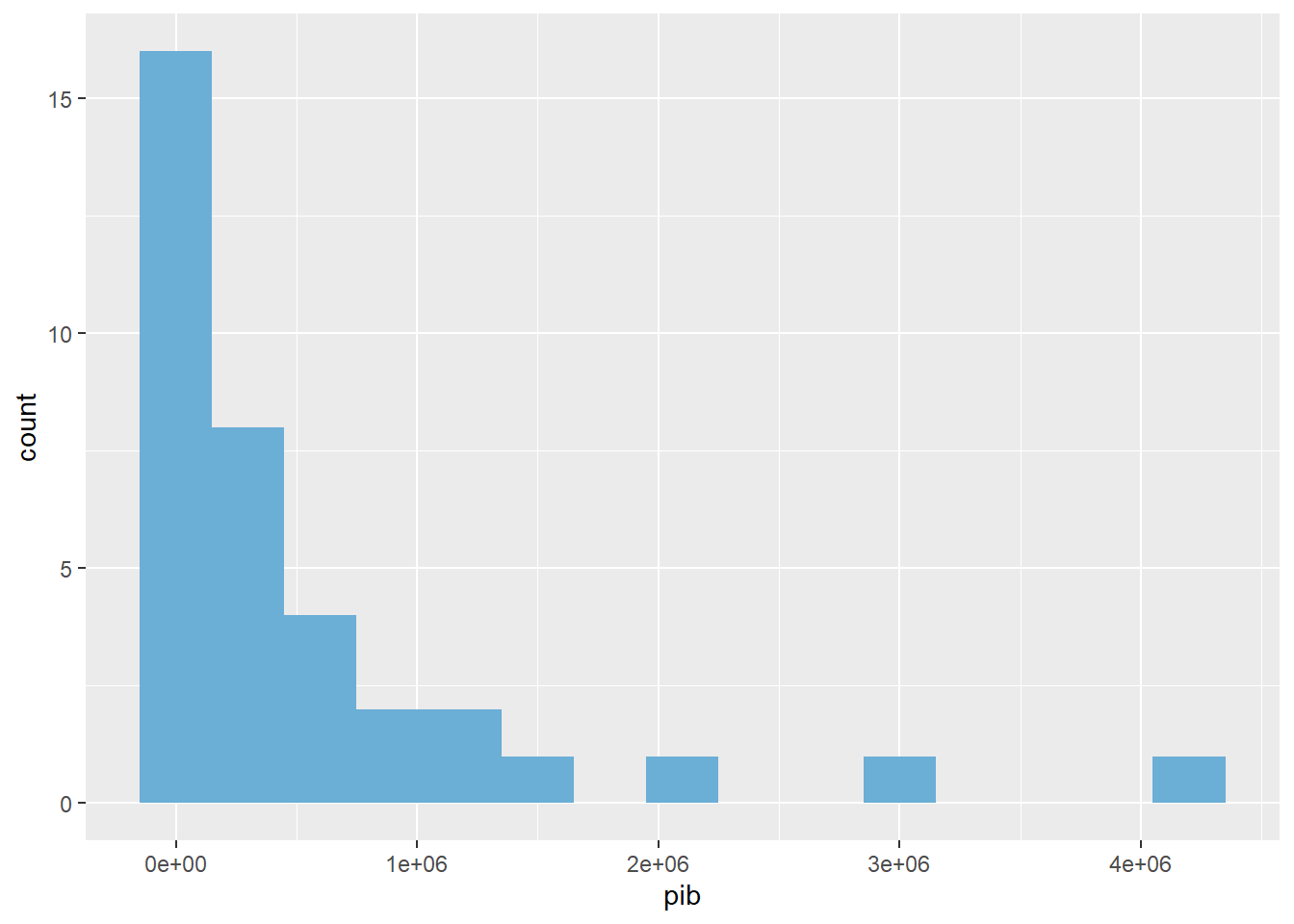 histograma_econ <- ggplot(datos_econ, aes(x = pib)) + geom_histogram(binwidth = 300000, fill = "blue")